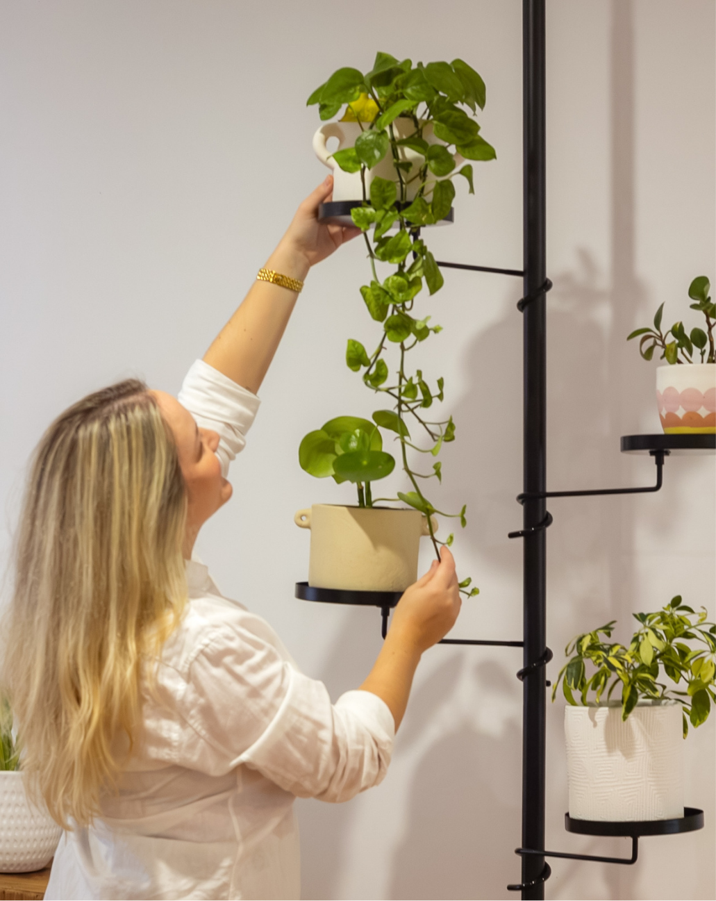 With adjustable height and customisable arms, create a plant display that perfectly fits your room’s layout and your plants’ needs. Ideal for a variety of climbing plants.